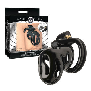 La Hard Stop Double Ring Chastity Cage invite à explorer la chasteté comme un jeu de contrôle à la fois accessible et profondément troublant. Fabriquée en plastique noir robuste, elle offre une sensation de confinement rassurante, idéale pour celles et ceux qui découvrent cet univers ou souhaitent s’y abandonner sur la durée. La cage mesure environ 5,3 cm de longueur pour 4,3 cm de largeur, créant une restriction visible et constante qui rappelle que le plaisir est désormais sous contrôle.