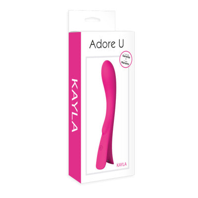 Le vibromasseur Adore U Kayla est conçu pour stimuler le point G grâce à sa courbe parfaite et possède un embout pour stimuler le clitoris, pour une expérience encore plus intense. Sa tige rigide est recouverte de silicone ultra-doux, ce qui la rend résistante aux éclaboussures et facile à nettoyer. Le Kayla propose 9 modes de vibration puissants et est rechargeable.
