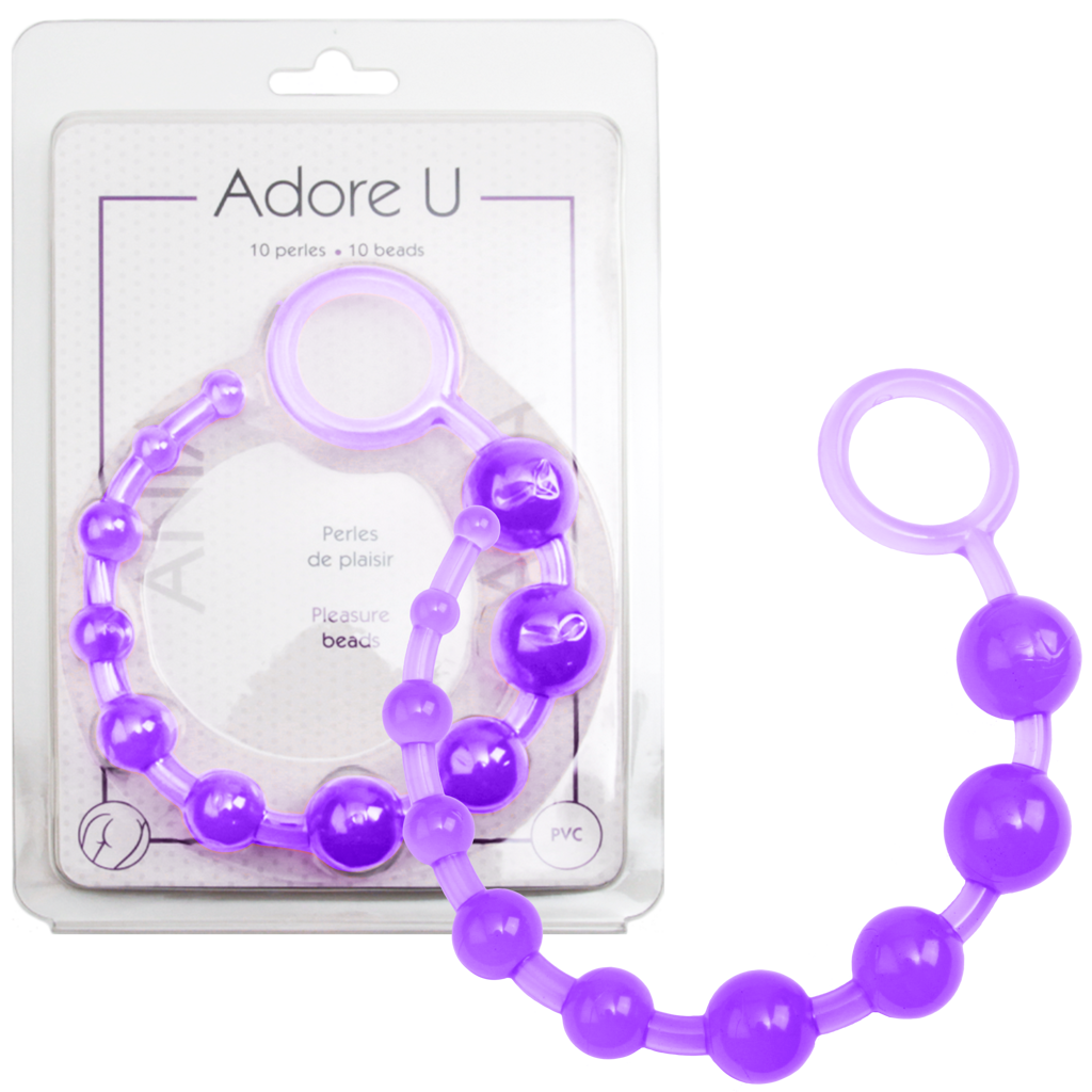Perles anales durables de taille graduée avec anneau de récupération par Adore U. Tenez la poignée de récupération, puis pendant l'orgasme, retirez les perles une à une.