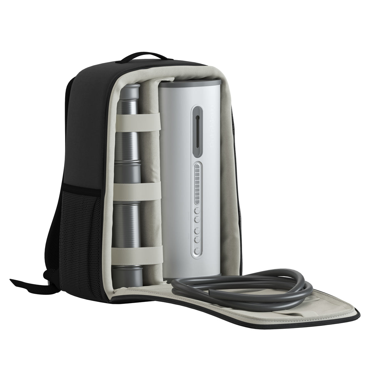 Discrétion et rangement sont essentiels. Chaque VacuGlide est livré dans un sac à dos avec un emplacement dédié pour chaque composant.