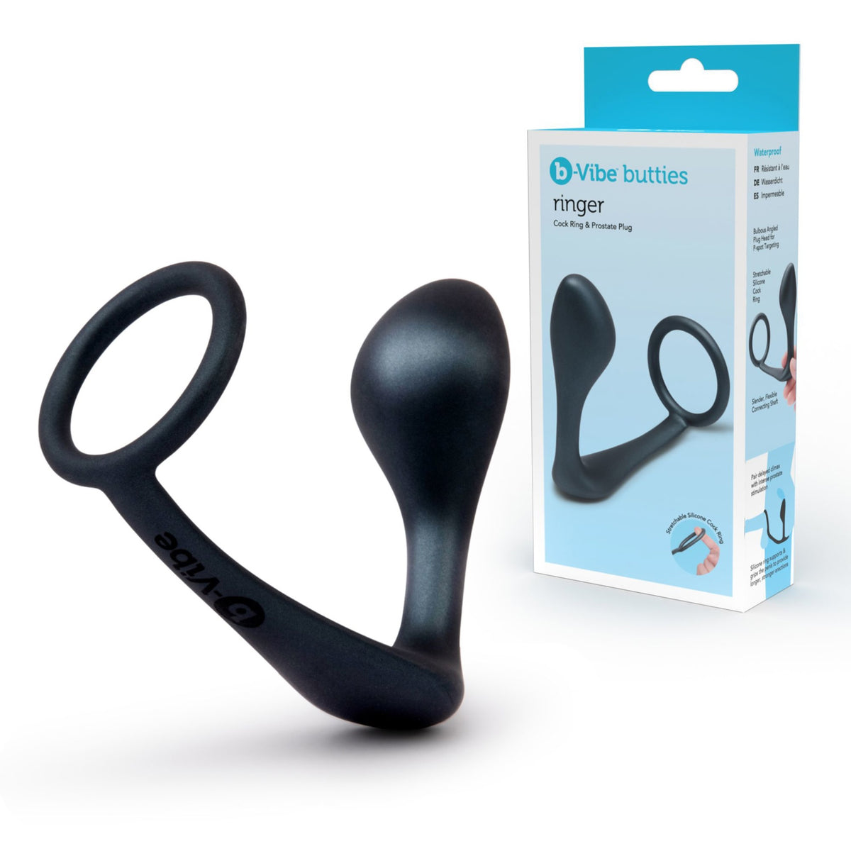 Combinez le meilleur des deux mondes avec l'anneau pénien et le plug prostatique b-Vibe Ringer !