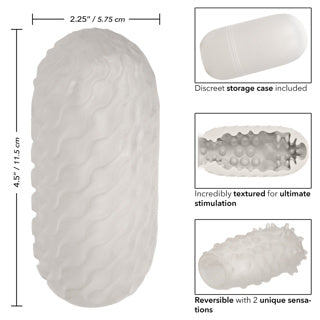 Laissez-vous séduire par son design réversible unique, alliant une surface douce et ondulée à un motif à picots stimulant pour des sensations de caresses inédites. Préparez-vous à une expérience de plaisir intense grâce à son extrémité fermée assurant une succion optimale.