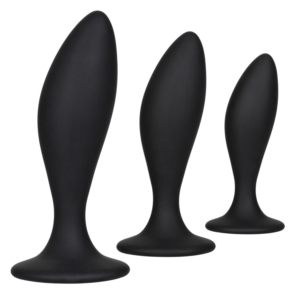 Kit d'entraînement comprenant 3 plugs anaux flexibles en silicone de tailles différentes.