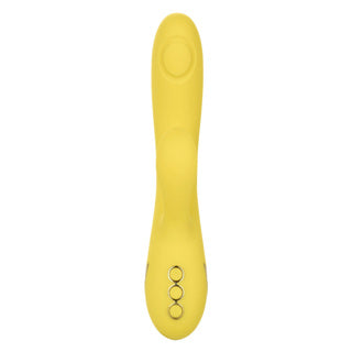 Ses trois moteurs puissants produisent des vibrations profondes et vibrantes, des tapotements délicats et des percussions vigoureuses. Que vous souhaitiez pimenter vos moments intimes avec votre partenaire ou simplement vous offrir un instant de plaisir en solo, ce masseur envoûtant est prêt à vous combler. Sa tige incurvée procure une stimulation intense du point G, tandis que son stimulateur clitoridien par tapotements offre un plaisir externe exquis. Contrôlez et personnalisez votre plaisir grâce aux fonctions de vibration et de rotation indépendantes.