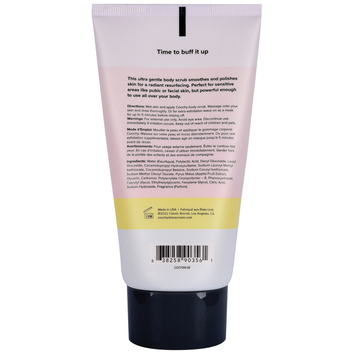 Mouillez votre peau et appliquez le gommage corporel Coochy. Massez délicatement puis rincez abondamment. Pour une exfoliation plus intense, vous pouvez également laisser poser comme un masque pendant 5 minutes maximum avant de rincer.