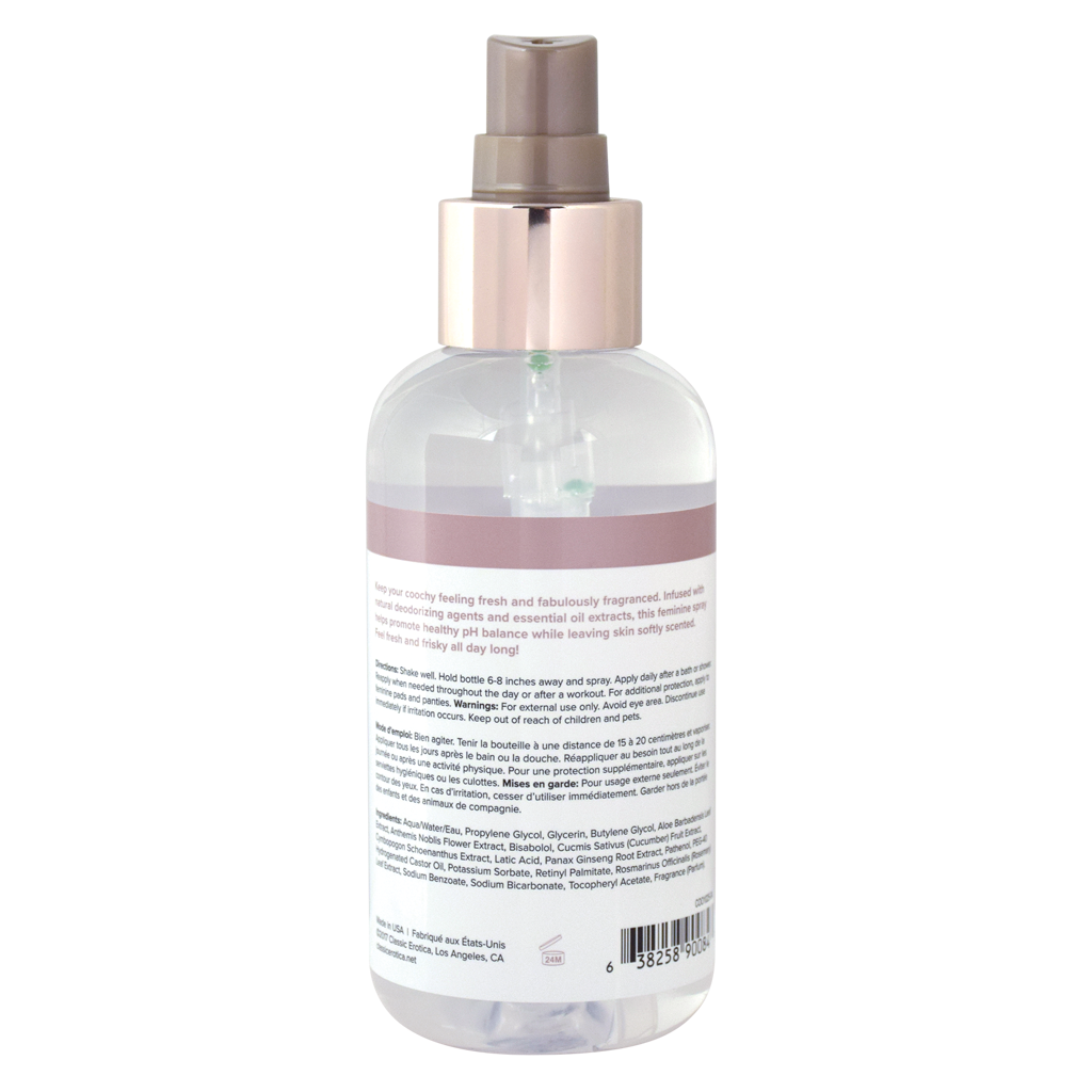 Gardez une sensation de fraîcheur et un parfum délicieux dans votre intimité. Enrichi en agents déodorants naturels et en extraits d'huiles essentielles, ce spray intime contribue à un pH équilibré tout en laissant la peau délicatement parfumée. Sentez-vous fraîche et séduisante toute la journée !