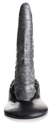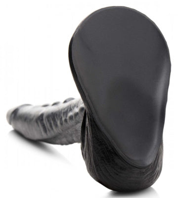 Le gode Gargoyle Rock Hard présente des stries et des bosses le long de sa tige, qui se terminent en une pointe lisse. Les boules noires sont bien serrées à la base large et recourbée.