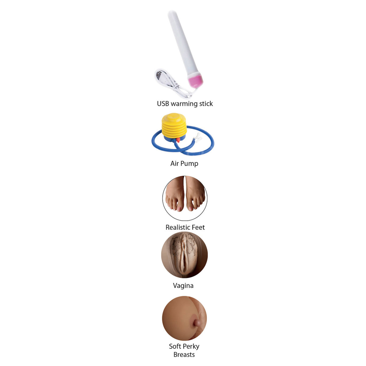 Ramenez chez vous la séduisante Rosita et faites-en ce que vous voulez. Contemplez le visage réaliste et sculpté de Rosita, ses grands yeux magnifiques et ses longs cils aguicheurs. Caressez ses cheveux ondulants tandis que vous glissez votre sexe dans sa bouche accueillante. Sentez ses lèvres roses réalistes, pressez ses seins doux et fermes et taquinez ses tétons dressés. Faites glisser vos mains le long de la taille fine et des hanches galbées de Rosita tandis que vous pénétrez son vagin incroyablement réaliste, doux et réaliste au toucher comme la réalité ! Cette poupée sexuelle gonflable est une brune grandeur nature et vous est livrée debout, prête à être pliée dans toutes les positions que vous souhaitez ! Ses fesses chaudes et serrées et son vagin spécialement conçu vous feront jouir à chaque fois ! Rosita donnera assurément une nouvelle dimension à votre prochaine rencontre sensuelle !
