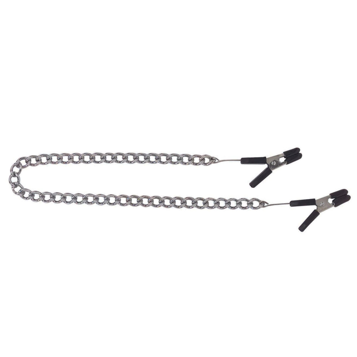 Pinces à tétons légères, de type câble de démarrage, avec embouts en caoutchouc. Leur petite surface assure une bonne adhérence. Chaîne à maillons.