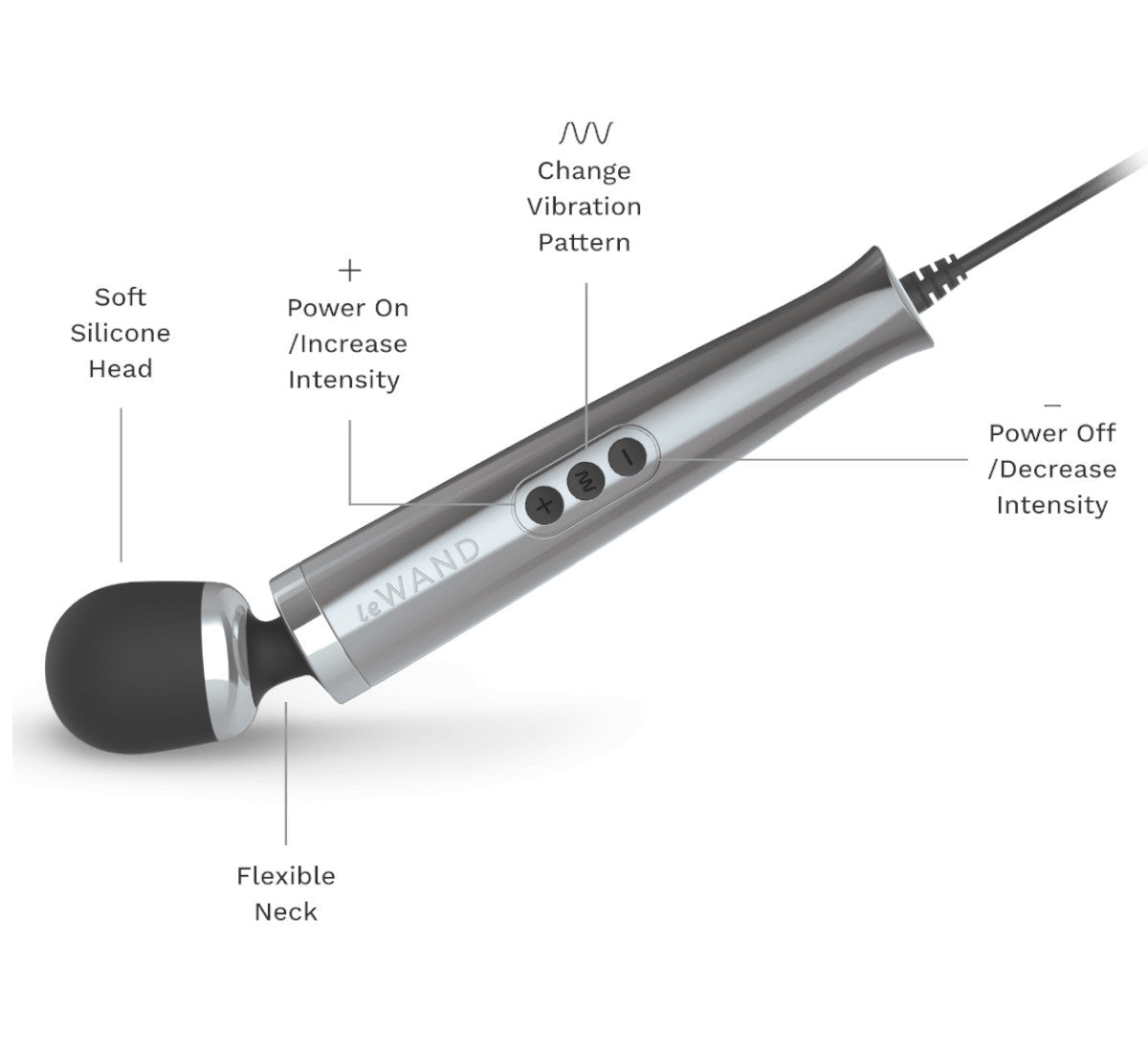 Fonctionnant sur secteur pour une stimulation continue, le masseur vibrant à brancher en fonte d'aluminium propose 10 vitesses et 20 modes de vibration pour une stimulation corporelle complète et une variété infinie de sensations.