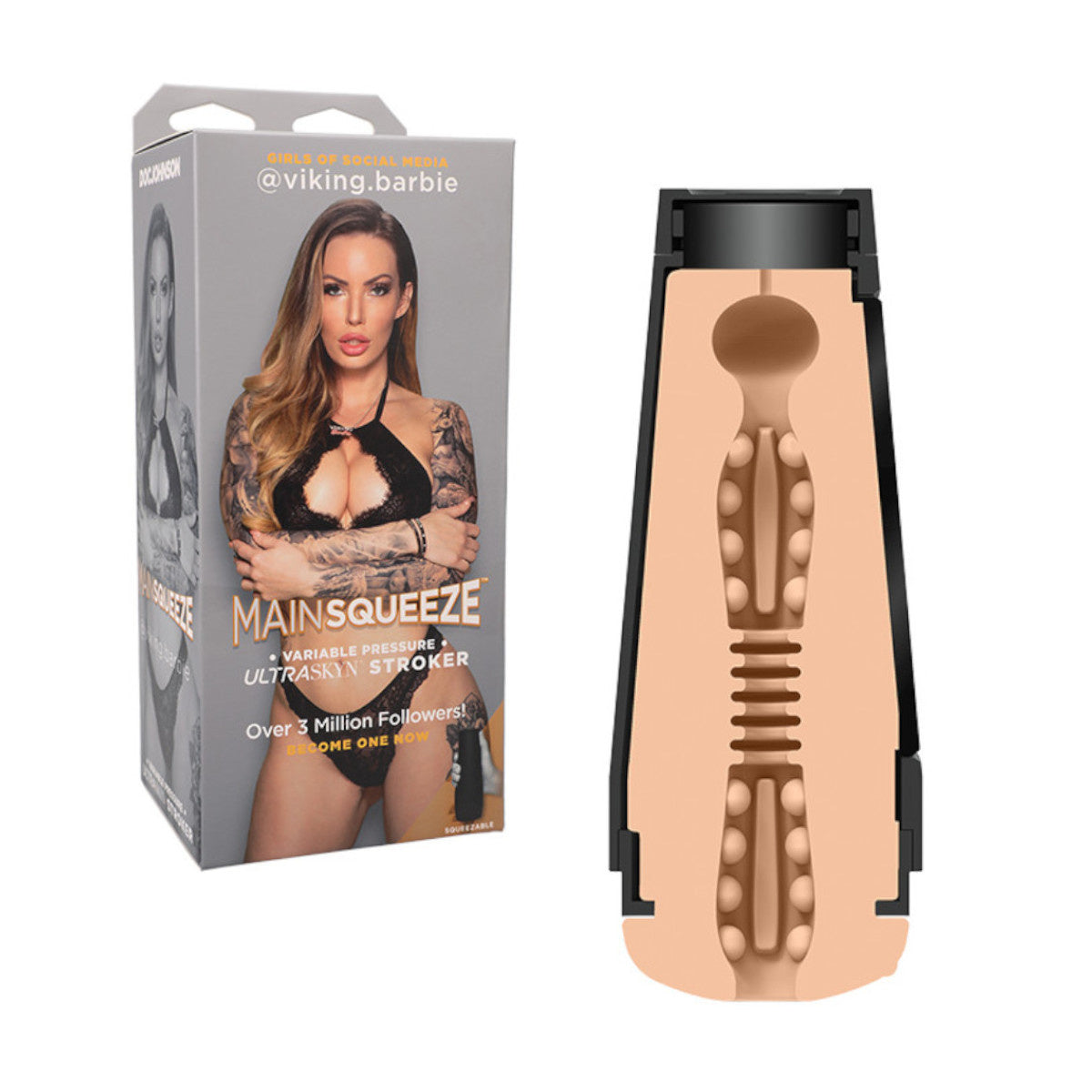 Tout droit sortie des couvertures de Maxim, FHM et Playboy, @viking.barbie rejoint la gamme Main Squeeze avec un masturbateur rigide à pression variable, moulé directement sur son corps. Fabriqué à la main en ULTRASKYN ultra-réaliste, le Main Squeeze @viking.barbie possède un intérieur texturé et serré qui se réchauffe au toucher et offre des sensations plus vraies que nature. Elle a peut-être des millions d'abonnés, mais ce soir, elle est à vous. Chaque manchon ULTRASKYN possède une texture intérieure différente, rendant votre expérience aussi unique que chacune de nos superbes Main Squeeze. Son étui rigide à double coque sert également d'étui de voyage et de rangement discret, gardant votre Main Squeeze frais et prêt à l'emploi à tout moment.
