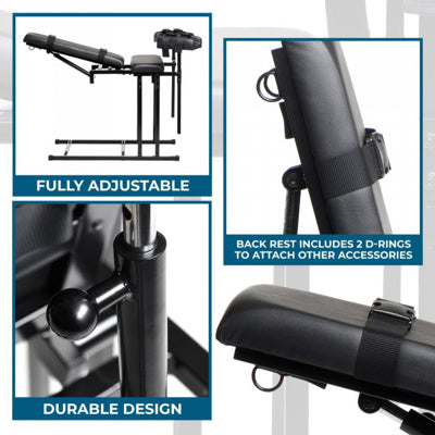 Allongez-vous confortablement, levez les jambes et profitez d'un luxe érotique raffiné avec cette chaise de bondage ajustable. Vous pouvez désormais vous positionner, vous ou votre partenaire, selon l'angle idéal pour vous deux.Cette chaise possède une structure robuste pouvant supporter jusqu'à 199 kg. Grâce à son dossier réglable, vous pouvez les asseoir en position verticale pour qu'ils observent vos séances de plaisir et de douleur, ou les allonger pour que leur corps se détende et s'étire, la poitrine et le ventre exposés aux taquineries, aux jeux sensoriels et aux caresses.