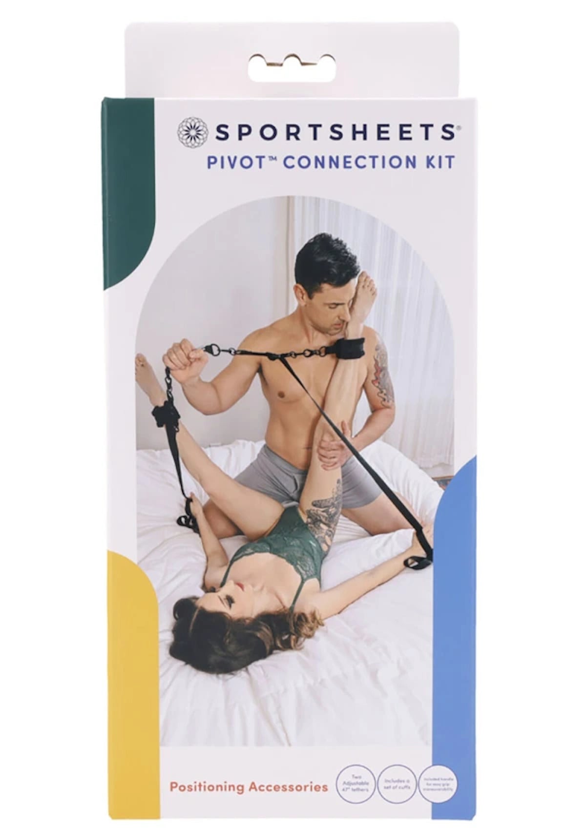 Deux sangles et menottes réglables incluses offrent des options de jeu supplémentaires, avec à la fois une contention et un soutien accru pour les poignets et les chevilles dans tous les jeux.