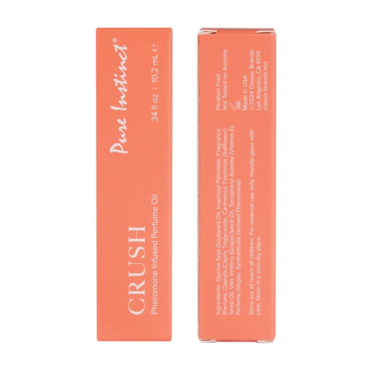 Découvrez CRUSH, l'huile parfumée à bille infusée de phéromones Pure Instinct : un parfum vibrant et envoûtant qui éveille les sens grâce à une énergie solaire irrésistible.
