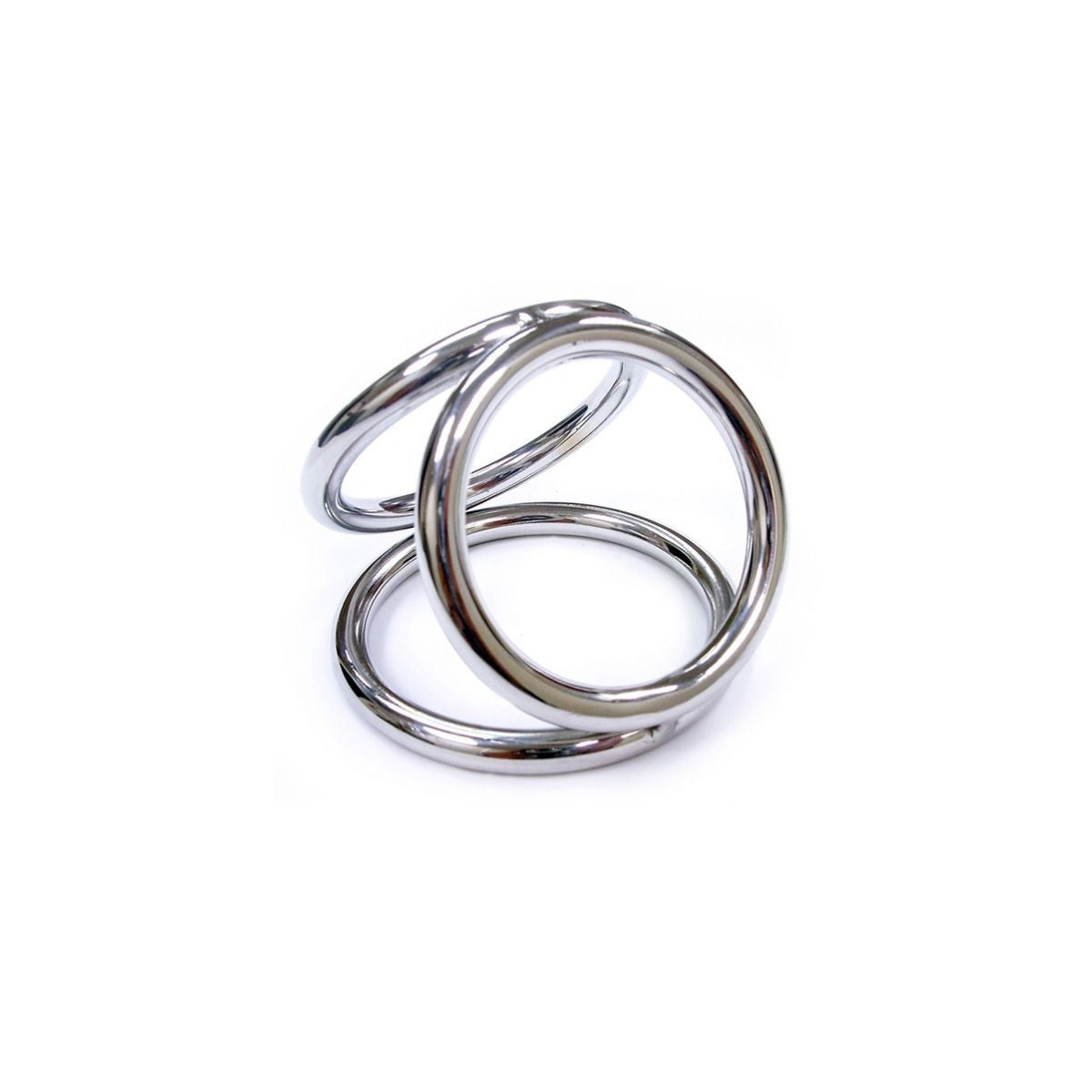 La cage à anneaux péniens triples – Taille moyenne allie confort et intensité grâce à un ajustement parfait. Composée de trois anneaux de tailles différentes (40 mm, 45 mm et 50 mm), elle assure un maintien précis et confortable. Le plus grand anneau se place à la base du pénis et des testicules, tandis que les deux autres enveloppent le pénis et un testicule, créant ainsi une cage sensuelle et raffinée. Un accessoire indispensable pour celles et ceux qui recherchent performance et esthétique.