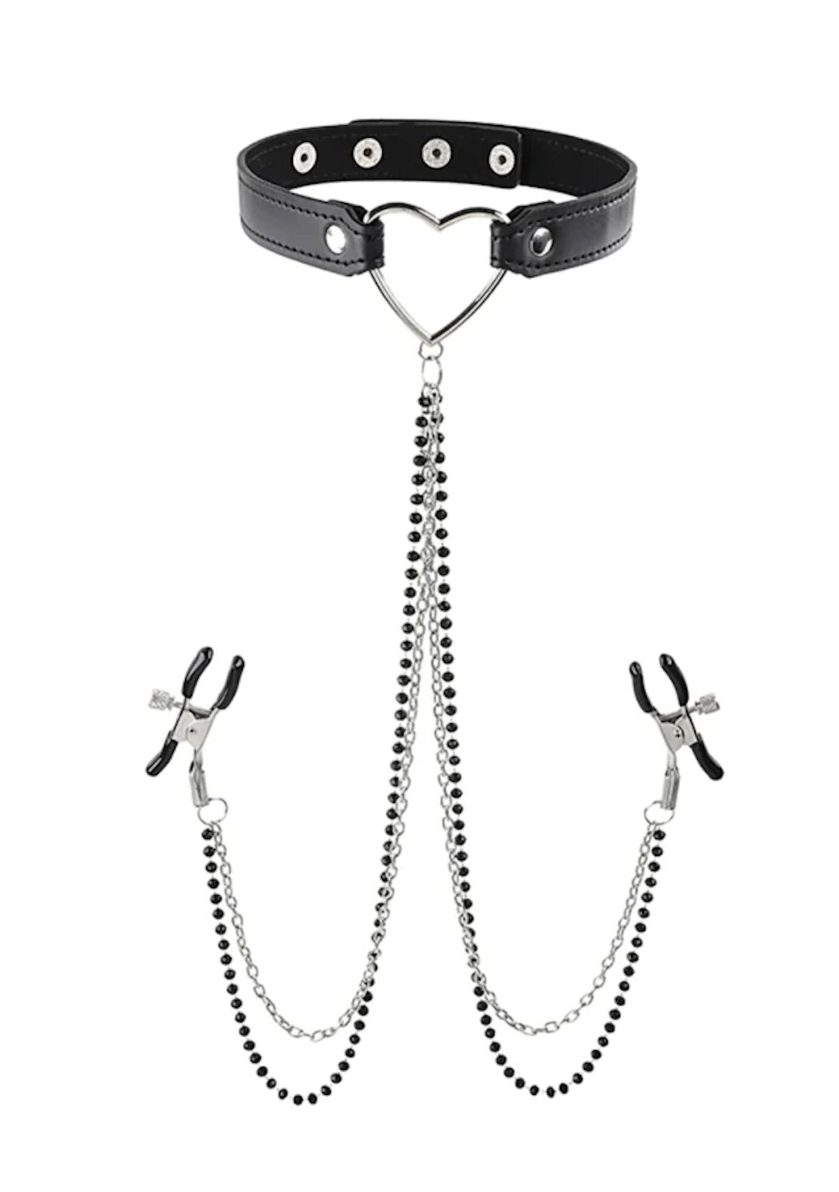 Pimentez vos jeux de tétons avec les pinces Amor. Grâce à leur système de réglage de la tension, vous ou votre partenaire pouvez facilement moduler le plaisir et la douleur. Le collier ras-de-cou en forme de cœur ajoute une touche délicieusement romantique à cet accessoire BDSM incontournable.
