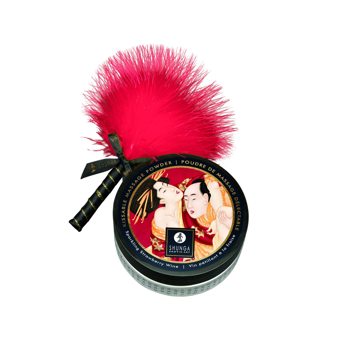 Transformez votre partenaire en un délice en saupoudrant ses zones érogènes d'une poudre aromatisée excitante. Utilisez délicatement le plumeau pour le titiller et le faire frissonner de la tête aux pieds, puis savourez !
