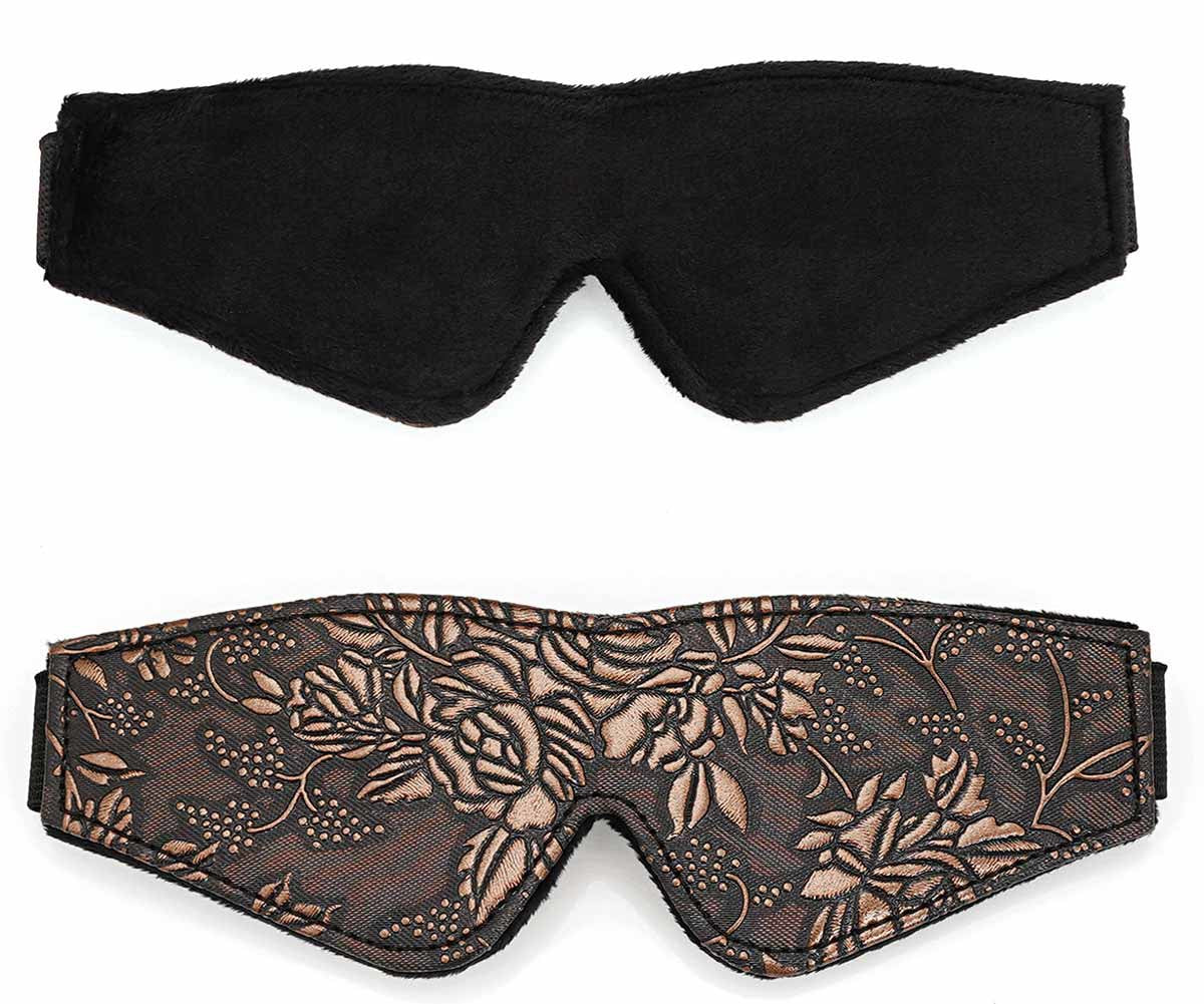 Masque en polyuréthane à imprimé floral marron avec doublure en fausse fourrure.