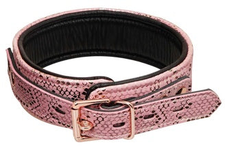 Collier et laisse en microfibre à imprimé serpent rose avec doublure rembourrée en peau d'agneau.