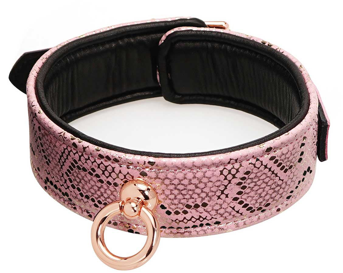 Spartacus - Collier et laisse avec doublure en cuir - Rose serpent