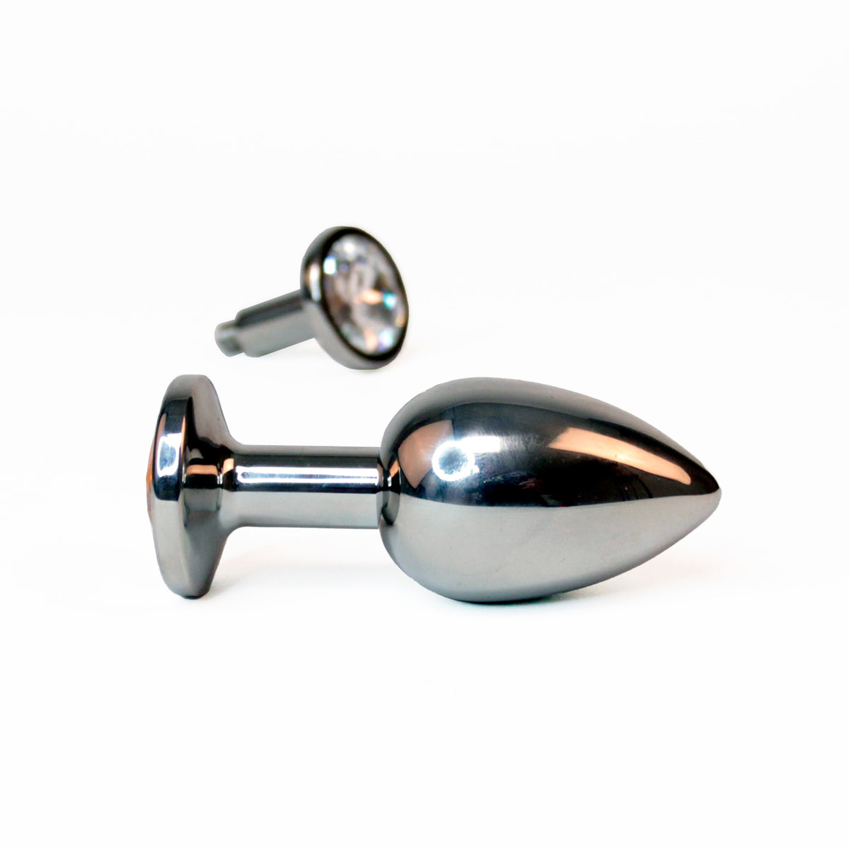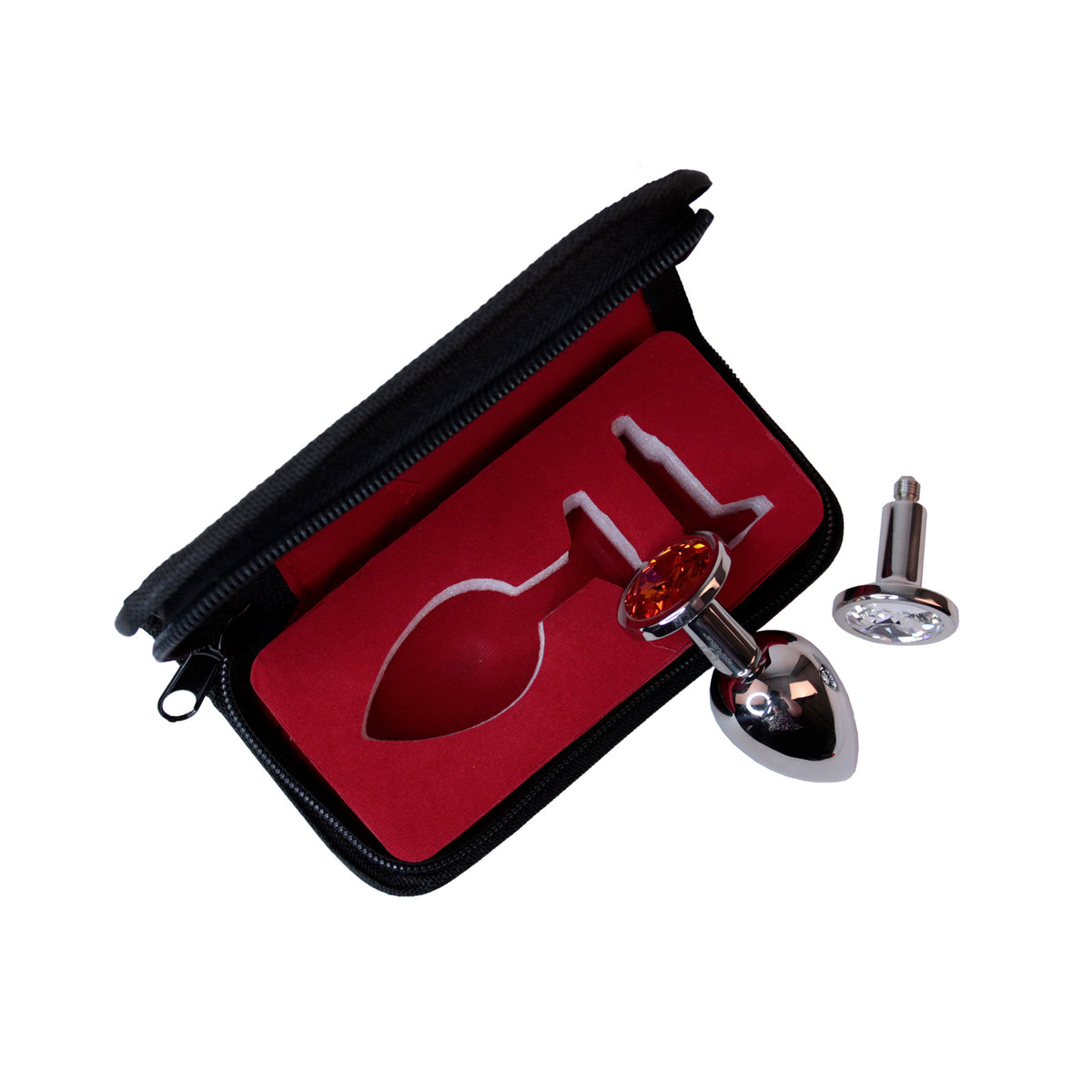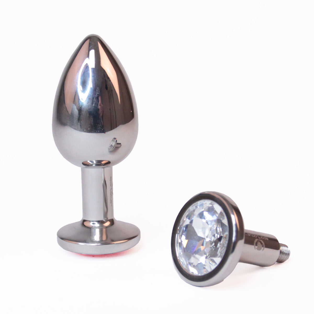 Ce plug anal interchangeable en acier inoxydable orné de cristaux Swarovski vous permet d'intensifier vos orgasmes avec luxe et élégance. Sa base sertie de pierres précieuses assure un port prolongé sûr et confortable, tandis que sa finition en acier inoxydable est lisse et compatible avec tous les lubrifiants anaux.